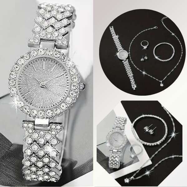 Diamonda – Laikrodis, karoliai, žiedas, auskarai + NEMOKAMA apyrankė